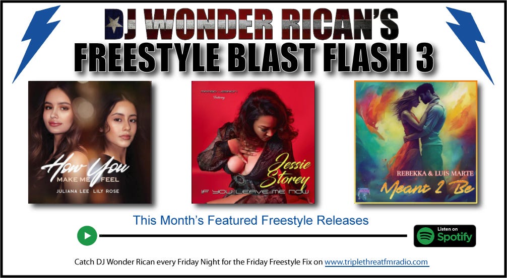 Also, make sure you work your way down to the end of the newsletter, where we feature the Freestyle Club and Concert Calendar. Just three months in and look how many Freestyle shows are already popping off. Now if this isn’t proof enough that our genre is still alive and thumpin’, well I don’t know what does.