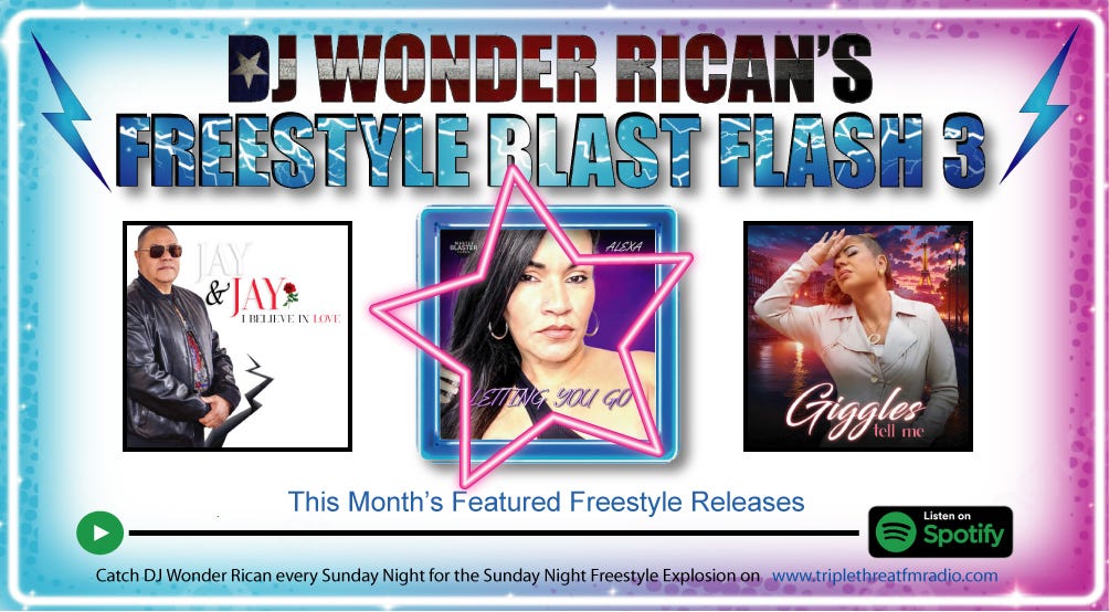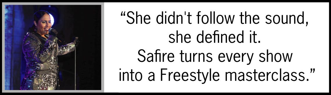 I'd also like to say that was quite a lineup of legendary ladies for the people in Downey, CA. I've had the pleasure of meeting and seeing Trinere multiple times. I got the chance to see Angel at a gig in Visalia, CA a while back. I did get to see Lissette Melendez on a Freestyle Explosion Throwback Jam concert that came to Palm Desert CA, last year. Haven't seen Safire or Betty Dee as of yet, hope to someday soon.