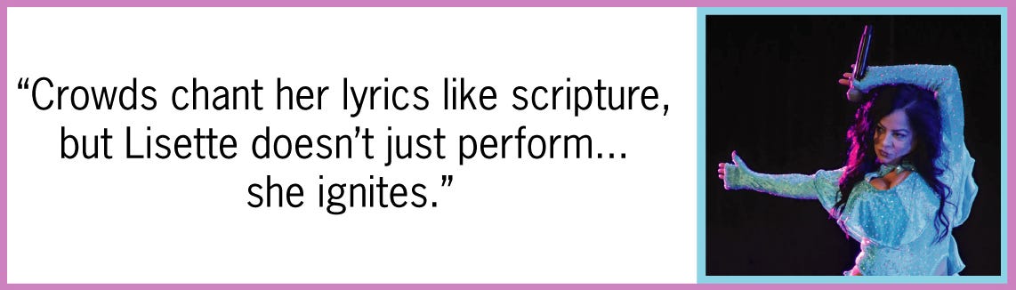 The crowd buzzed with anticipation, and when Lisette took the stage, she reminded everyone why she’s such a force. No dancers needed. Just pure fire. She lit the match, and the room exploded. Every lyric hit like a memory, every beat pulled the crowd closer. With nothing but a mic and her presence, she owned the moment, proving once again what it means to be a legend.