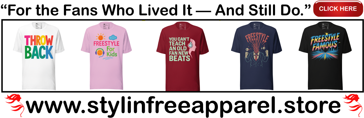 We’ve also got you covered with the latest from The Freestyle Club and Concert Calendar, so you’ll know exactly which shows are headed your way. But before you head out for that night of Freestyle fun, make sure to drop by The Stylin’ Free store and see what new Freestyle inspired Tee’s we got up.