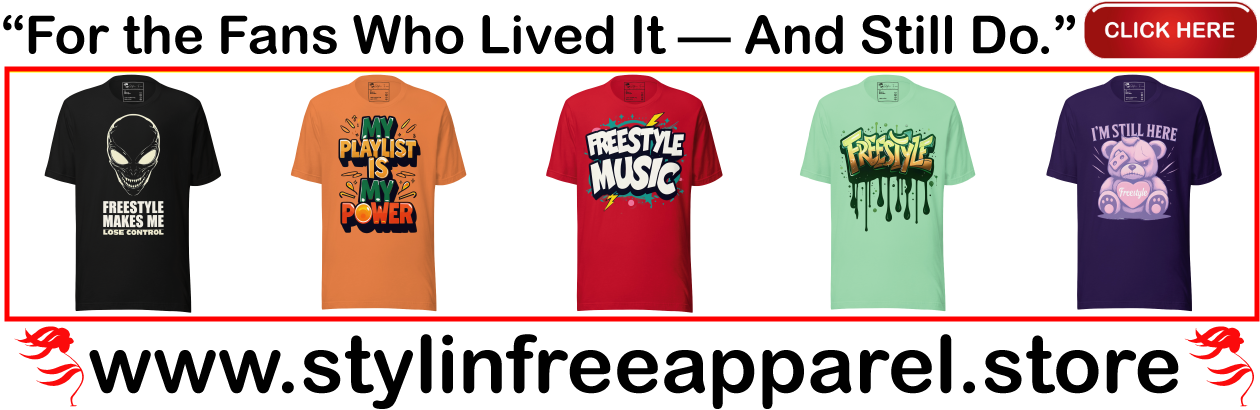 Podcasters, the ball’s in your court now. You have the power to reintroduce Freestyle to the world. You can remind people that we’re still here, still active, and still evolving. Even better, you can reach new audiences, younger listeners who might not even know what Freestyle is. Start the revival by honoring our legends, while inspiring a new generation to step forward.