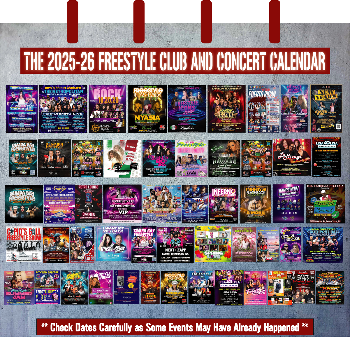 And last but not least, our Freestyle Club and Concert Calendar. See what Freestyle events are headed your way and make sure you get those tickets.