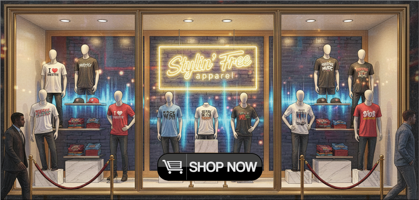 That question led me to the idea of launching The Freestyle Collection as the debut release for my new Stylin’ Free Apparel online store. The original vision for Stylin’ Free Apparel came to light in the mid 90’s to accompany an independent label of the same name in which I released two Freestyle CD complications, and regretfully shut down during the production of Compilation number three.